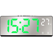 Yeşil Ses Kontrolü İle Dijital Ayna Çalar Saat Sıcaklık, Çift Alarm Erteleme Masaüstü Masa Saati Gece Modu 12/24 H Led Saat