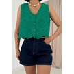 Yeşil Sıfır Kol Brode Bluz Yeşil