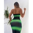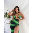Yeşil Siyah Degrade Desen Derin Yırtmaçlı Göğüs Dekolteli Midi Elbise Siyah - Yeşil