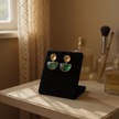 Yeşil Taşlı Minimal Küpe - Altın Renk Detaylı Zarif Tasarım Çok Renkli