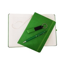 Yeşil Termo Deri Defter, Kalem Ve Anahtarlık Seti