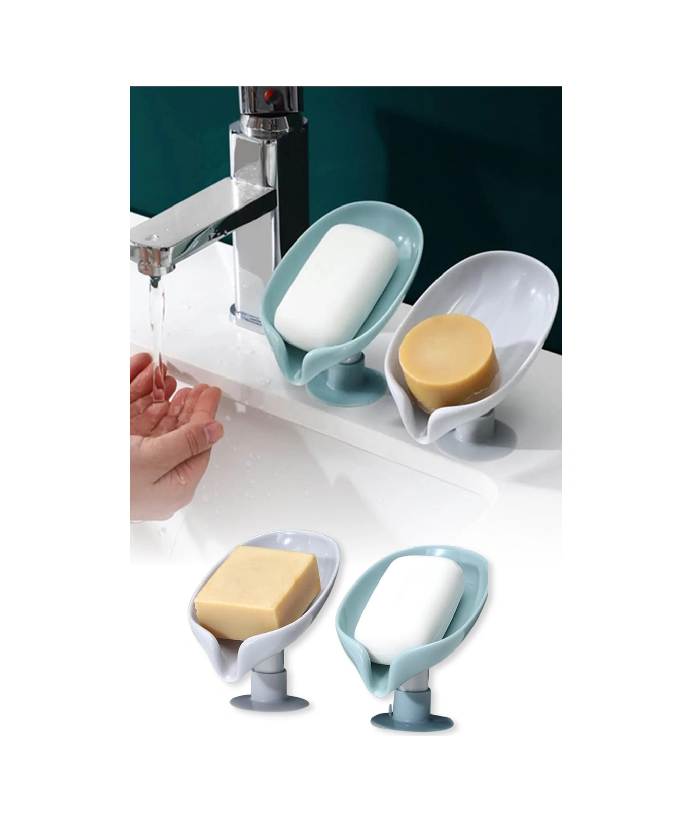 Yeşil Ve Gri Vantuzlu Su Giderli Sabunluk Şık Tasarımlı Su Tutmaz Katı Sabunluk Diğer