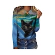 Yeşil Ve Mavi Komik Sevimli Kedi 3d Baskı Gömlek Rahat Kazaklar Kadın Kıyafetleri İlkbahar Sonbahar Uzun Kollu Tişörtler Kadın Giyim Moda Üst Giyim Yeşil - Mavi