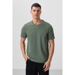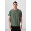 Yeşil Yüzeyi Dokulu Rahat Form Basic Erkek T-shirt - 88436 Yeşil