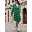 Yeşilkaz Ayağı Desenli, Cep Detaylı, Uzun Kaban Yeşil