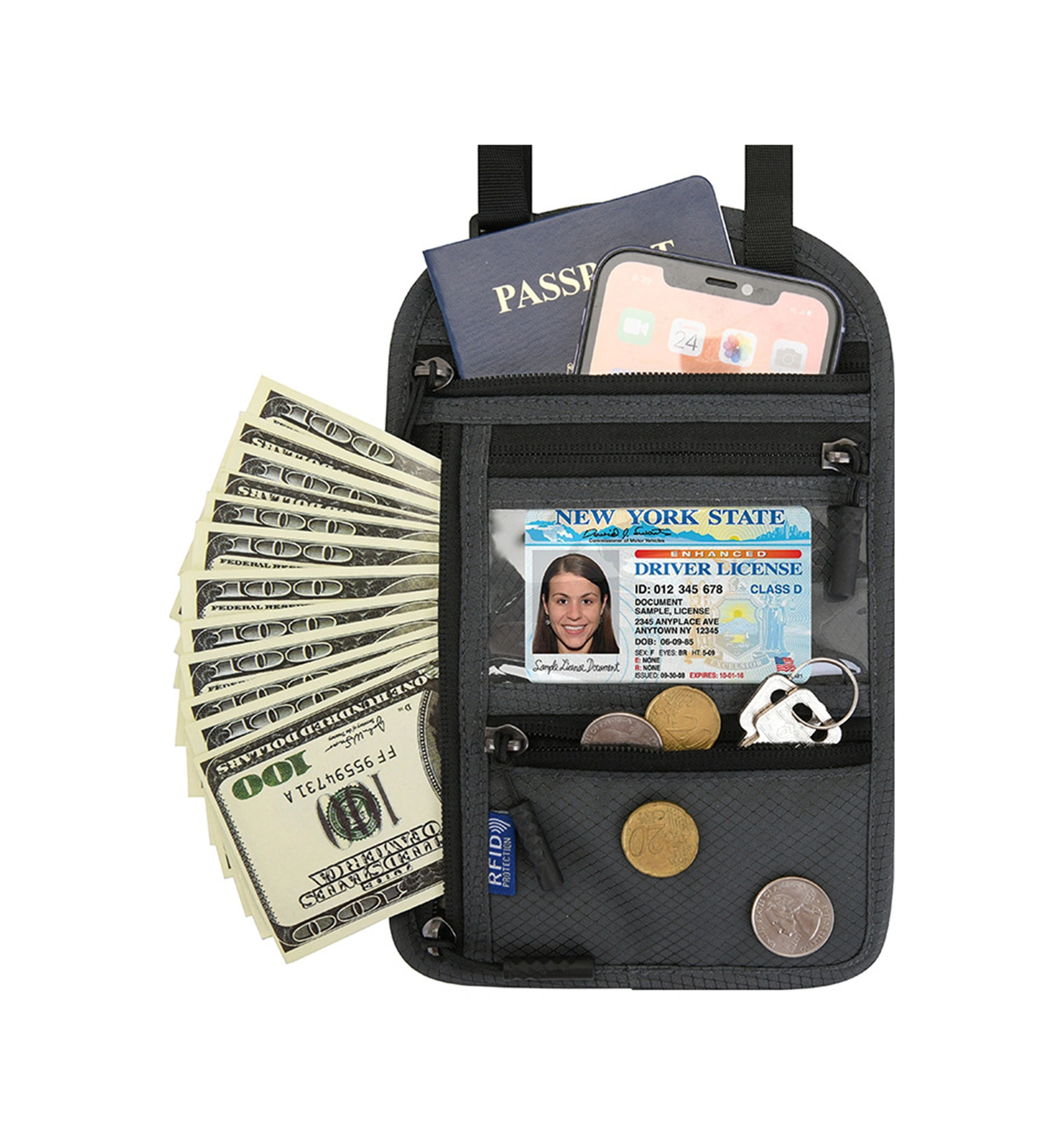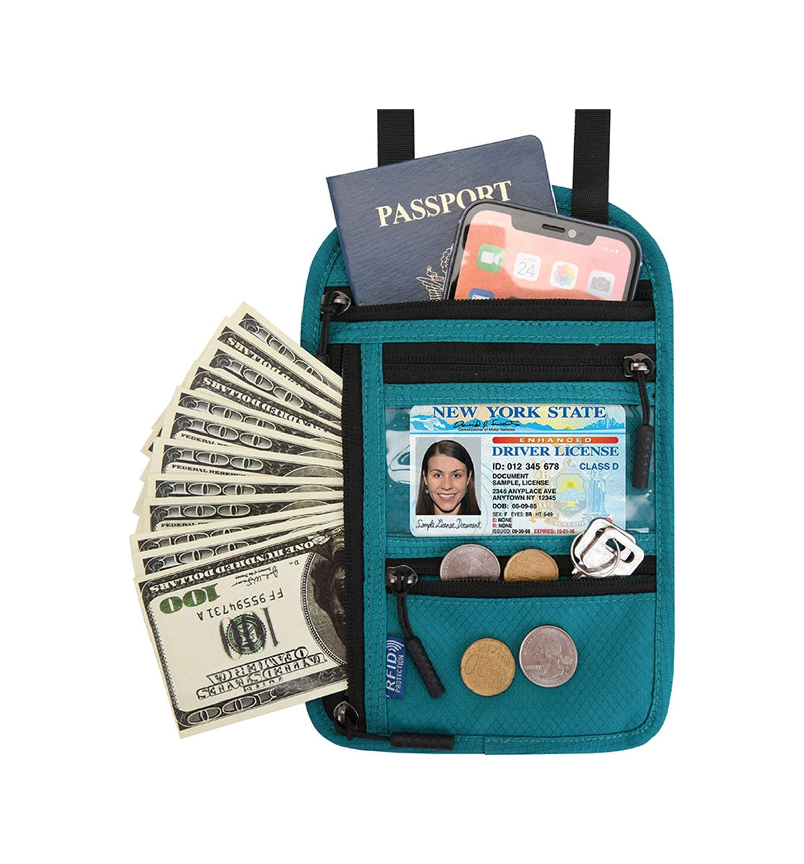 Yifomall Yolculuk Rfıd Koruma Nylon Askılı Cüzdan - Pasaport, Bilet Ve Belgeler İçin Ultra Hafif Gizli Saklama Çantası Göl Mavisi