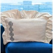 Yıkanmış Keten Dikdörtgen Motif Kanaviçe Nakışlı Fırfırlı Kırlent Kılıfı Naturel