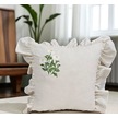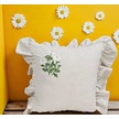Yıkanmış Keten Papatya Nakıslı Fırfırlı Kırlent Kılıfı Beyaz