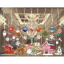 Yılbaşı Elektrostatik Sticker 3 Lü Pembe Evli Model Renkli 70x50 Cm