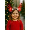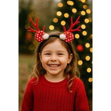 Yılbaşı Geyik Boynuzlu Puf Tüylü Kırmızı Puantiyeli Saç Bandı Çocuk Parti Taç Aksesuar