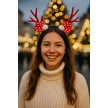 Yılbaşı Geyik Boynuzlu Puf Tüylü Kırmızı Puantiyeli Saç Bandı Yetişkin Kadın Parti Taç Aksesuar
