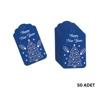 Yılbaşı Happy New Years Yazılı Hediye Etiketi, Çam Desenli Paketl