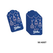 Yılbaşı Mutlu Yıllar Yazılı Hediye Etiketi, Delikli, Küre Desenli