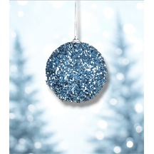 Yılbaşı Süsü 3'lü Parıltılı Top Mavi 10 Cm