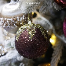 Yılbaşı Süsü Altın Pullu 2'li Top Bordo 10 Cm