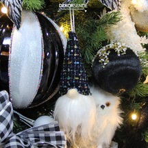 Yılbaşı Süsü Işıklı Cüce Sakallı Bereli Kafa Siyah 15 Cm