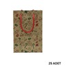 Yılbaşı Tasarımlı Kraft Karton Çanta Seti-25li, Kırmızı İpli Parti, Noel, Hediye Çantası, 12x17 Cm Standart