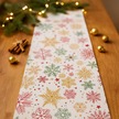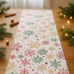 Yılbaşı Temalı Masa Runner I Krem Zeminli, Renkli Kar Tanesi Desenli 40x140 Cm Bej - Krem