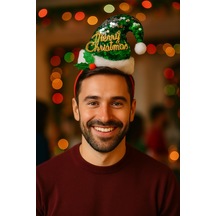 Yılbaşı Yeni Yıl Parlak Yeşil Pullu Merry Christmas Şapkalı Kırmızı Taç Parti Aksesuarı