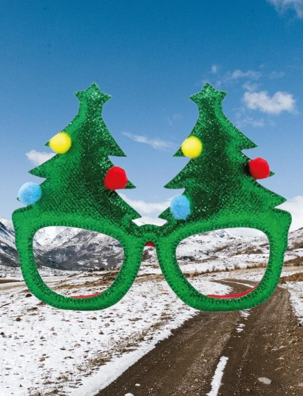 Yılbaşına Özel Lüks Gözlük Kadife Ağaçlı Model Çam Ağacı Yumuşak Hafif Yılbaşı Gözlügü