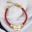 Yıldız İsmine Özel Kelebek Motifli 14 Ayar Altın Plakalı Turuncu Derili Hediye Bileklik-502isim Yıldız