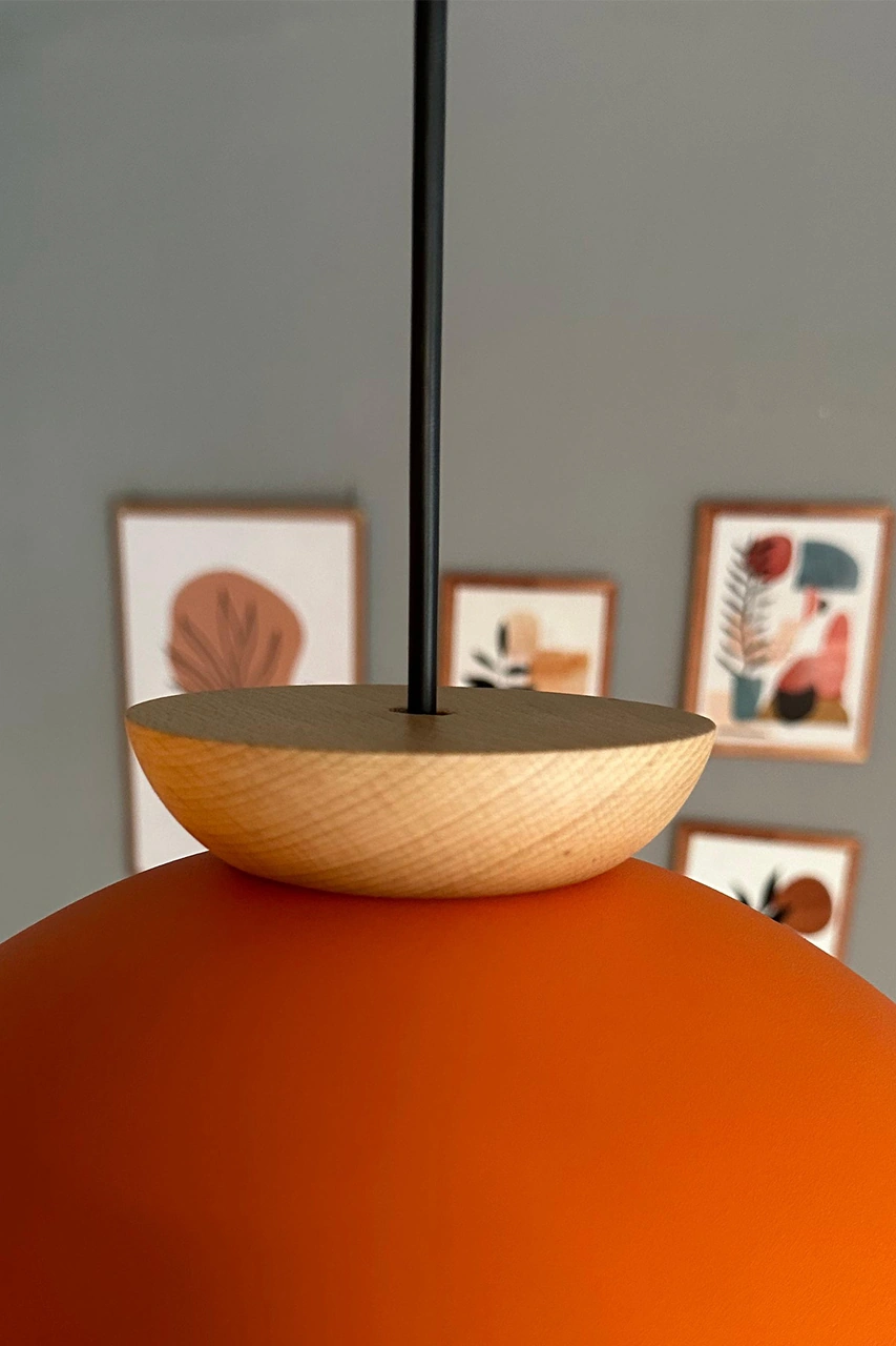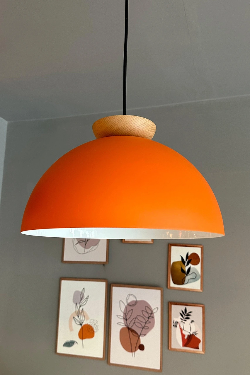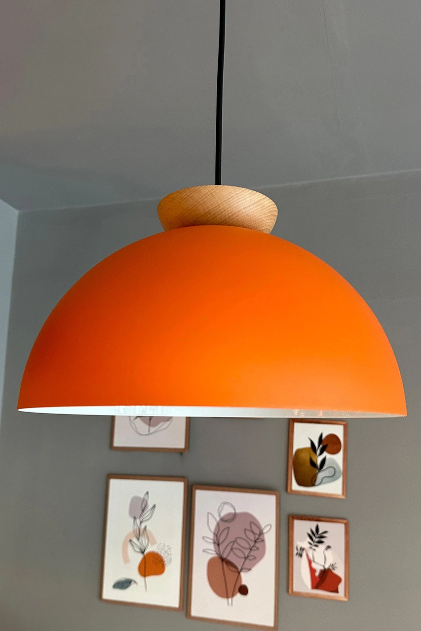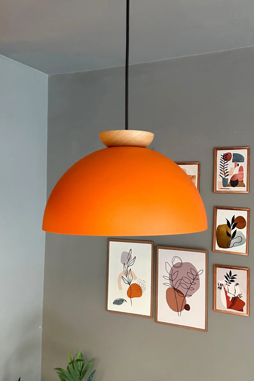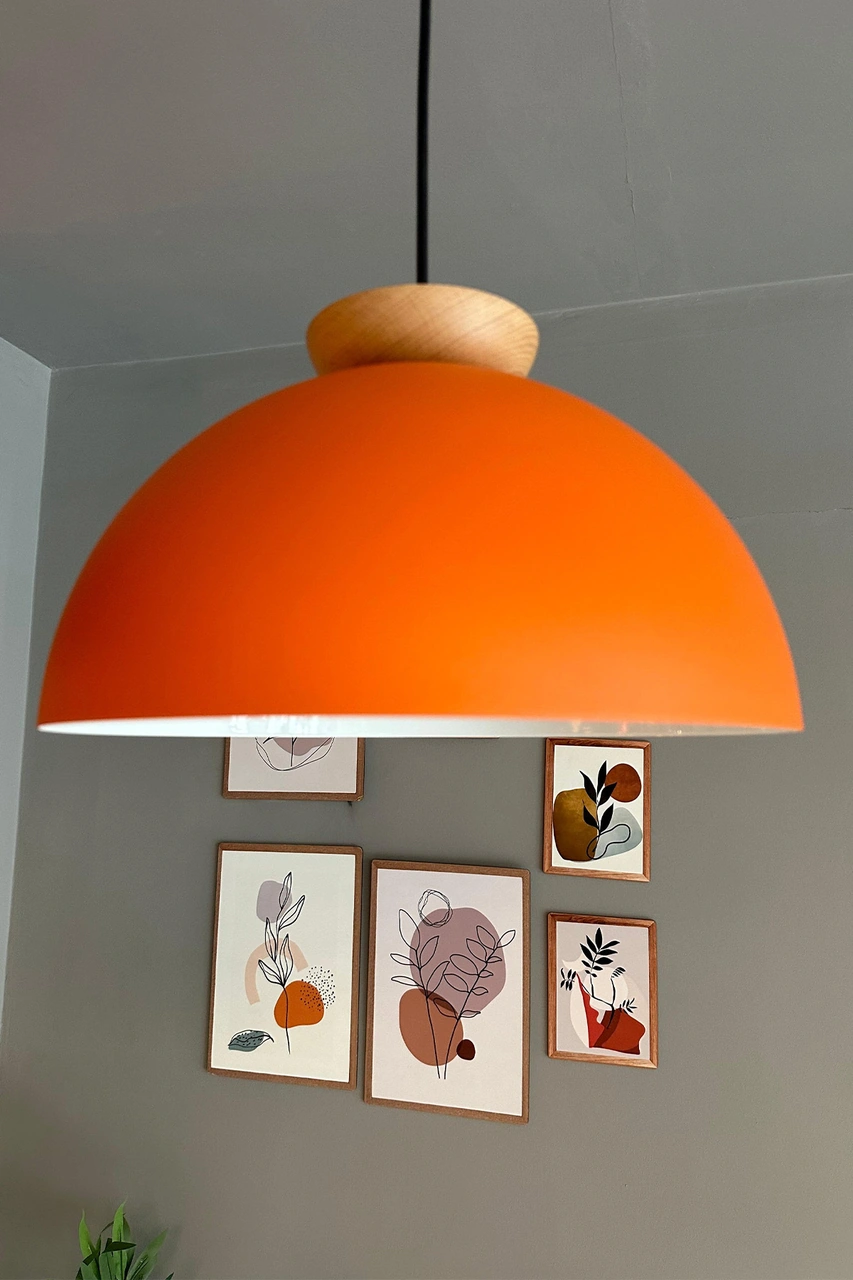 Yimpi Mat Turuncu Avize Ahşap Tekli Sarkıt Salon Kuaför Cafe Dekoratif Aydınlatma Pastane Turuncu