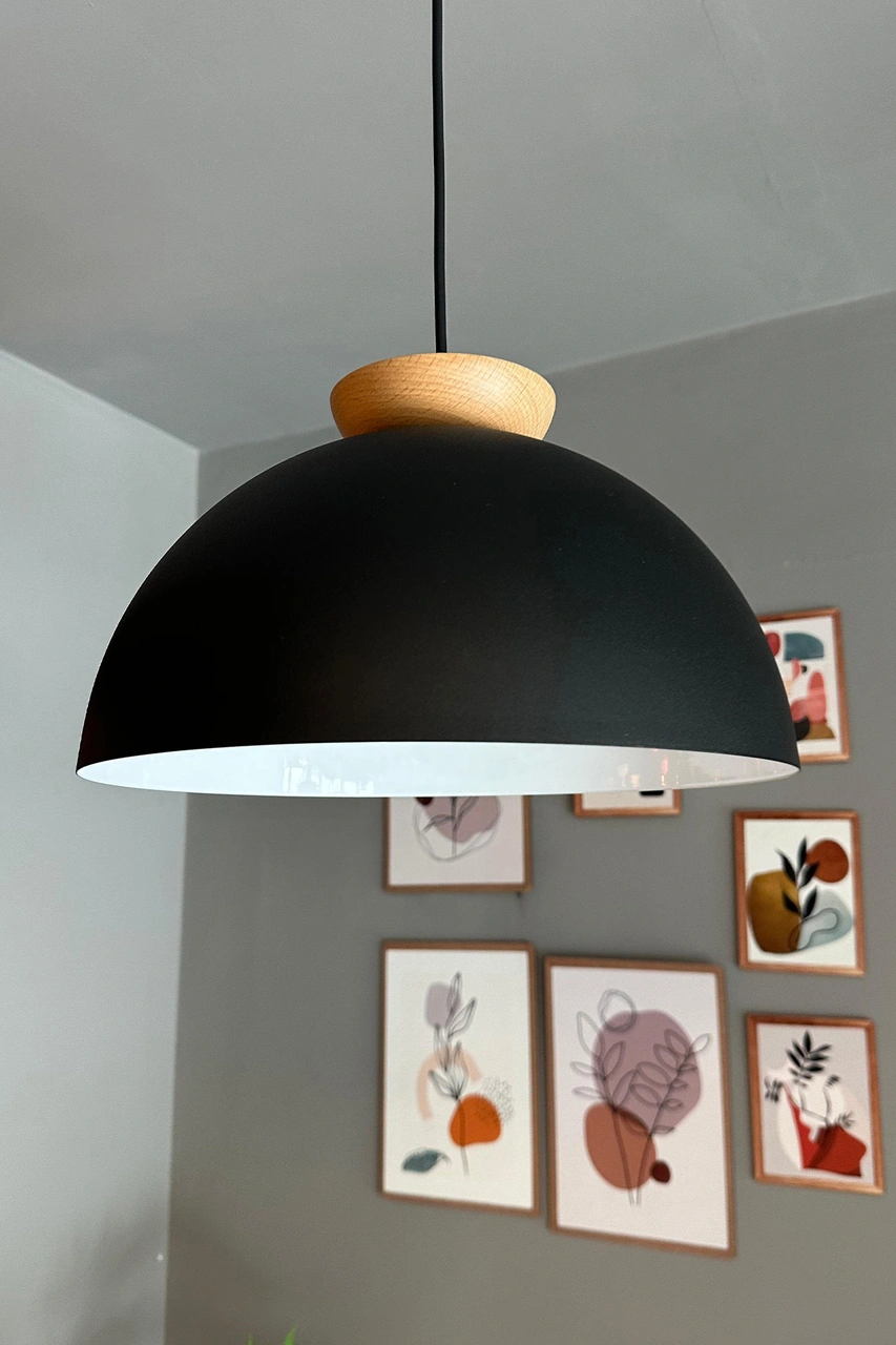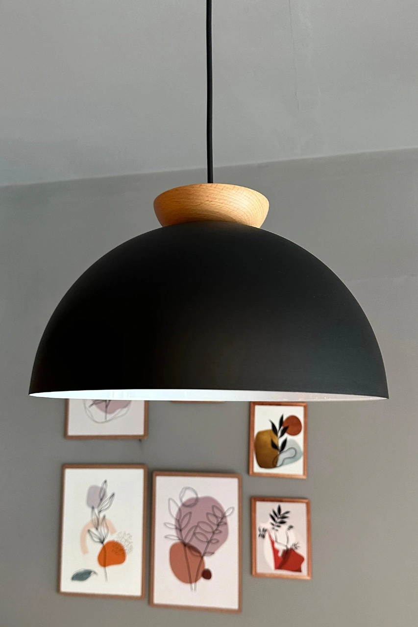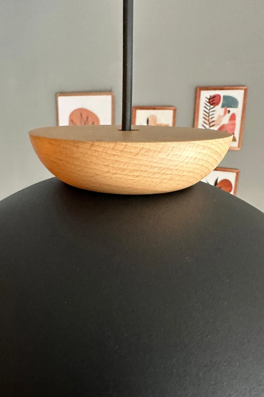 Yimpi Siyah Avize Ahşap Tekli Sarkıt Salon Kuaför Cafe Dekoratif Aydınlatma Pastane Siyah