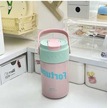 Yingfu Çocuklar İçin Paslanmaz Çelik Pipetli Bardak, Kız Öğrenciler İçin Taşınabilir Termos Bardak, Geniş Kapasiteli Açık Pe Açık Pembe