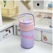 Yingfu Çocuklar Için Paslanmaz Çelik Pipetli Bardak, Kız Öğrenciler Için Taşınabilir Termos Bardak, Şık Görünümlü, Geniş Kap Açık Mor