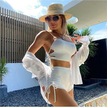 Yingfu Yüksek Bel Kadın Bikini Mayo Seti, Düz İplik İki Parça Yaz Plaj Giyimi, Beyaz Beyaz