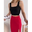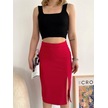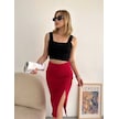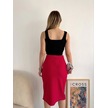 Yırtmaçlı Esnek Kumaş Midi Boy Etek Koyu Kırmızı Kırmızı