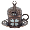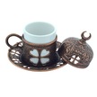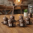 Yonca Desenli 6 Kişilik Porselenli Kapaklı 24 Parça Bakır Renk Fincan Seti Bakır