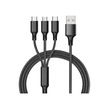Youmex 1.2m Siyah Nylon Örgülü 3-in-1 Kablosu: Type-c, Micro Usb, İphone Uyumlu 2.4a Hızlı Şarj, Dayanıklı Ve Esnek Tasarım