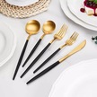 Youmex 304 Paslanmaz Çelik 5 Parça西餐 Seti - Biftek Bıçağı, Çatal, Tatlı Çatalı, Kaşık, Tatlı Kaşığı - Siyah Altın Rengi - Ev Kullanıma Uygun Altın - Siyah