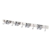 Youmex 304 Paslanmaz Çelik Duvar Tipi Mop Tutucu - Gri Renk, 4 Raf 5 Kanca, Yüksek Dayanıklı, Banyo/balkon Uygun