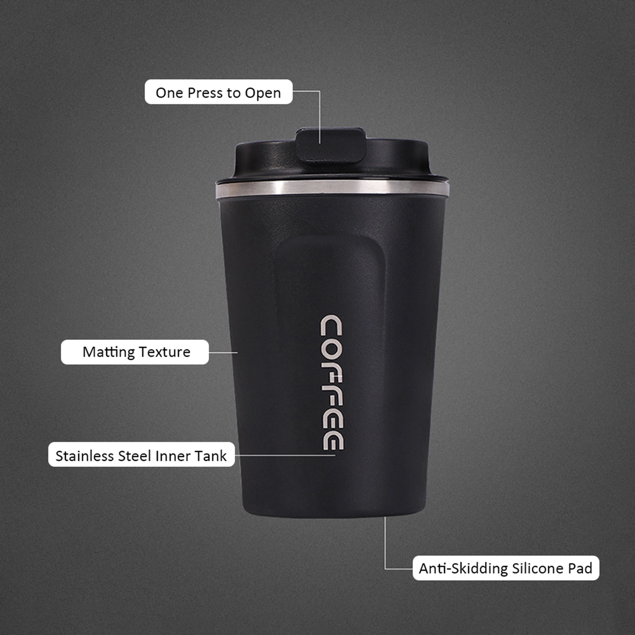 Youmex 304 Paslanmaz Çelik Vakumlu İki Katlı Isı Saklama Bardak, Sıcak Ve Soğuk İçecek Tutar, 510ml Büyük Boy Siyah Ofis Kupa