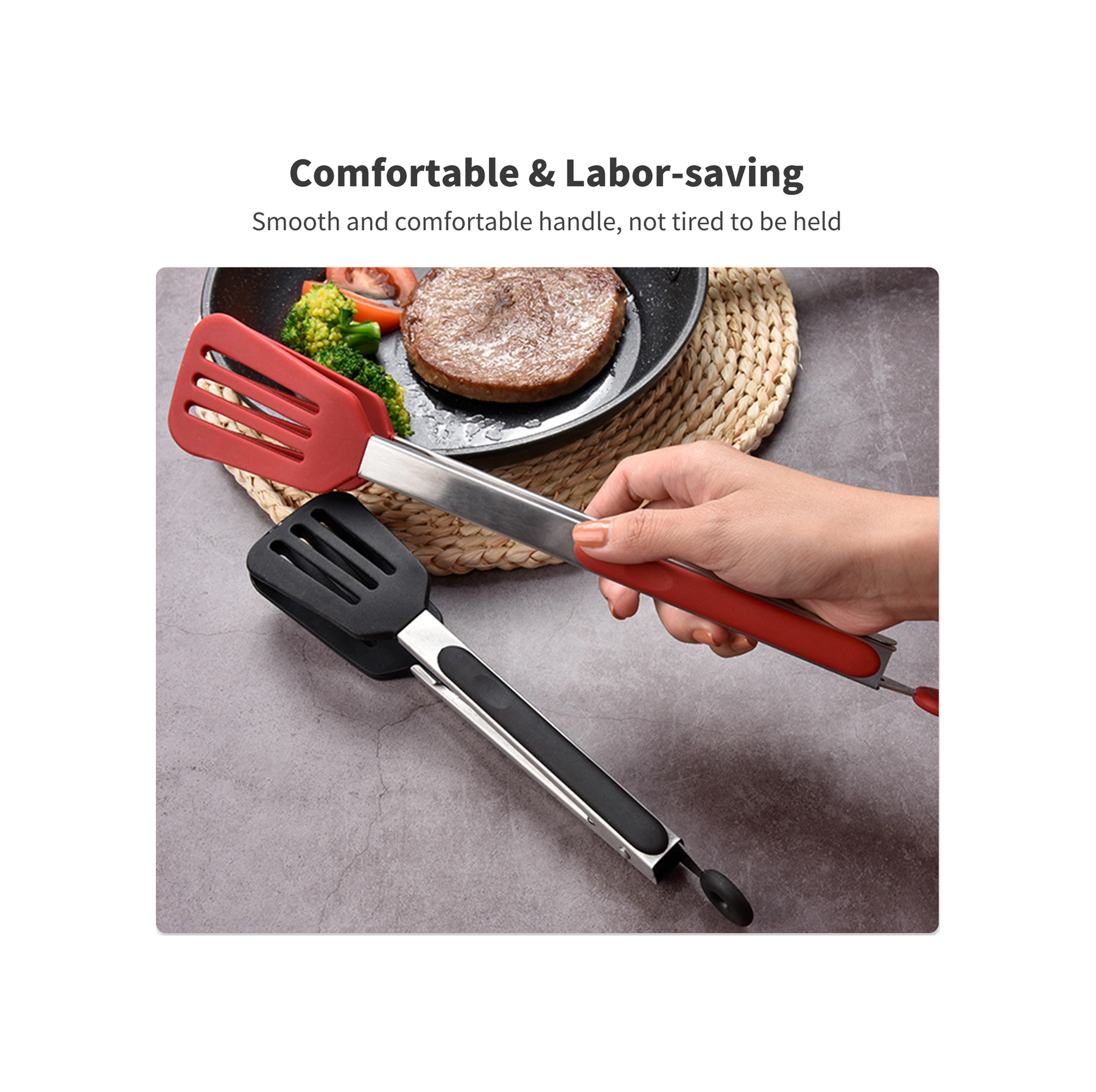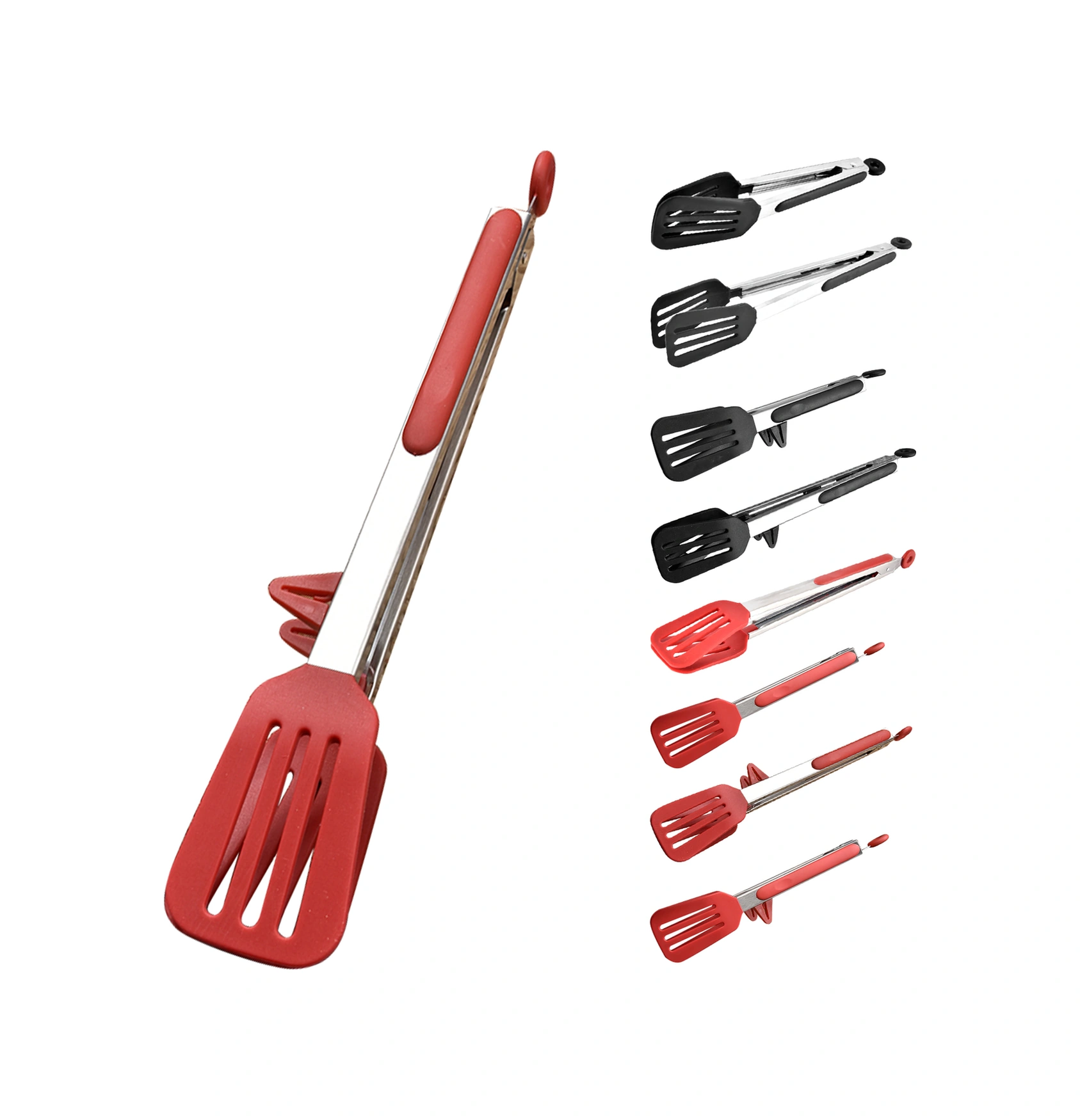 Youmex 34.5 Cm Büyük Boy Gıda Kalitesi Silikon & Paslanmaz Çelik Izgara Araçları, Isıya Dayanıklı, Tutuşu Kolay, Asma Çemberi, Kırmızı Çok Renkli