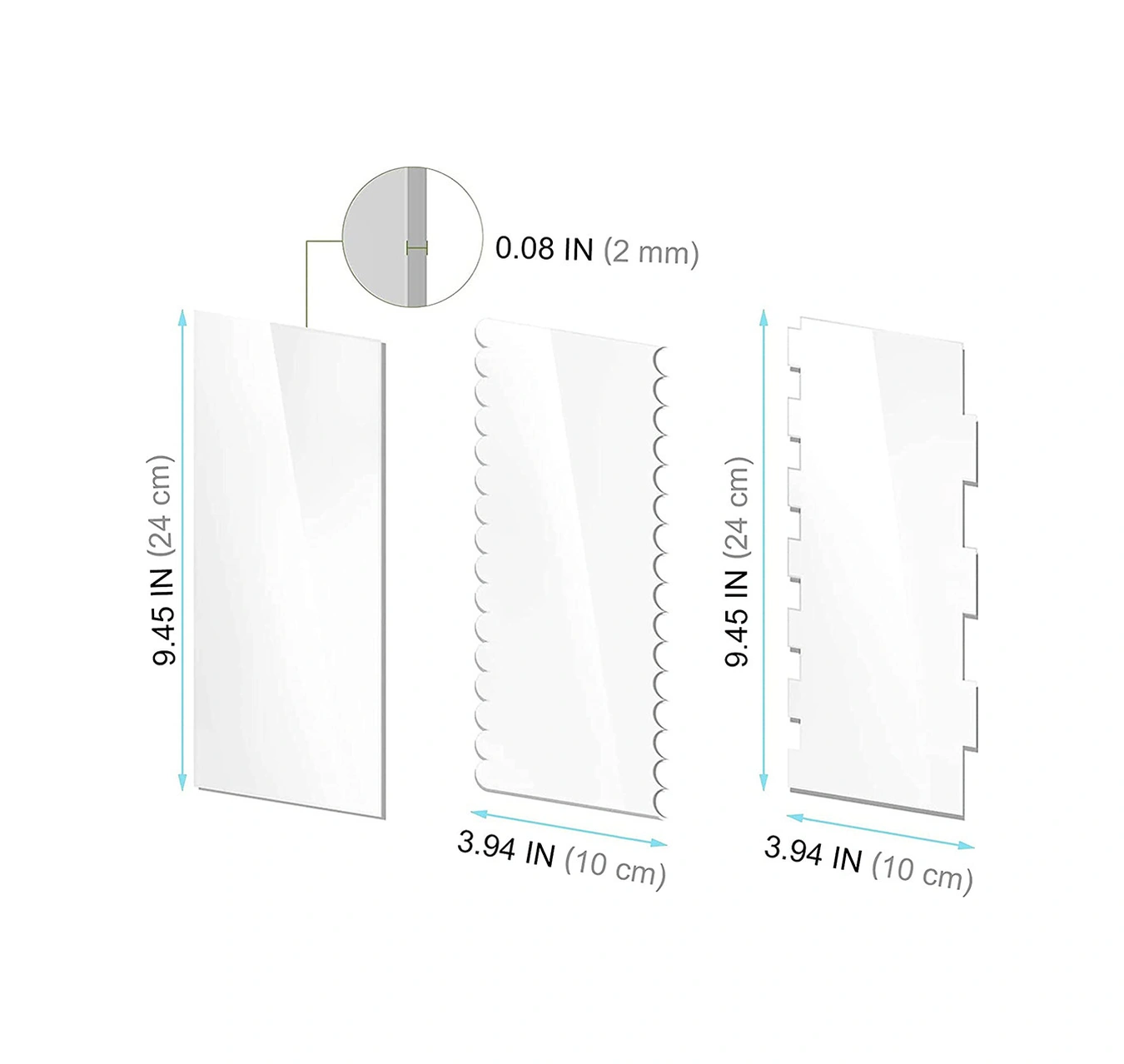 Youmex 6'lı Akrilik Pasta Squeegee Seti - Pürüzsüz Kabuk & Desenli Kenar Oluşturucu - Profesyonel Pastane Aracı Soğuk Beyaz