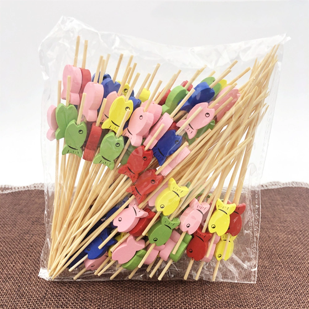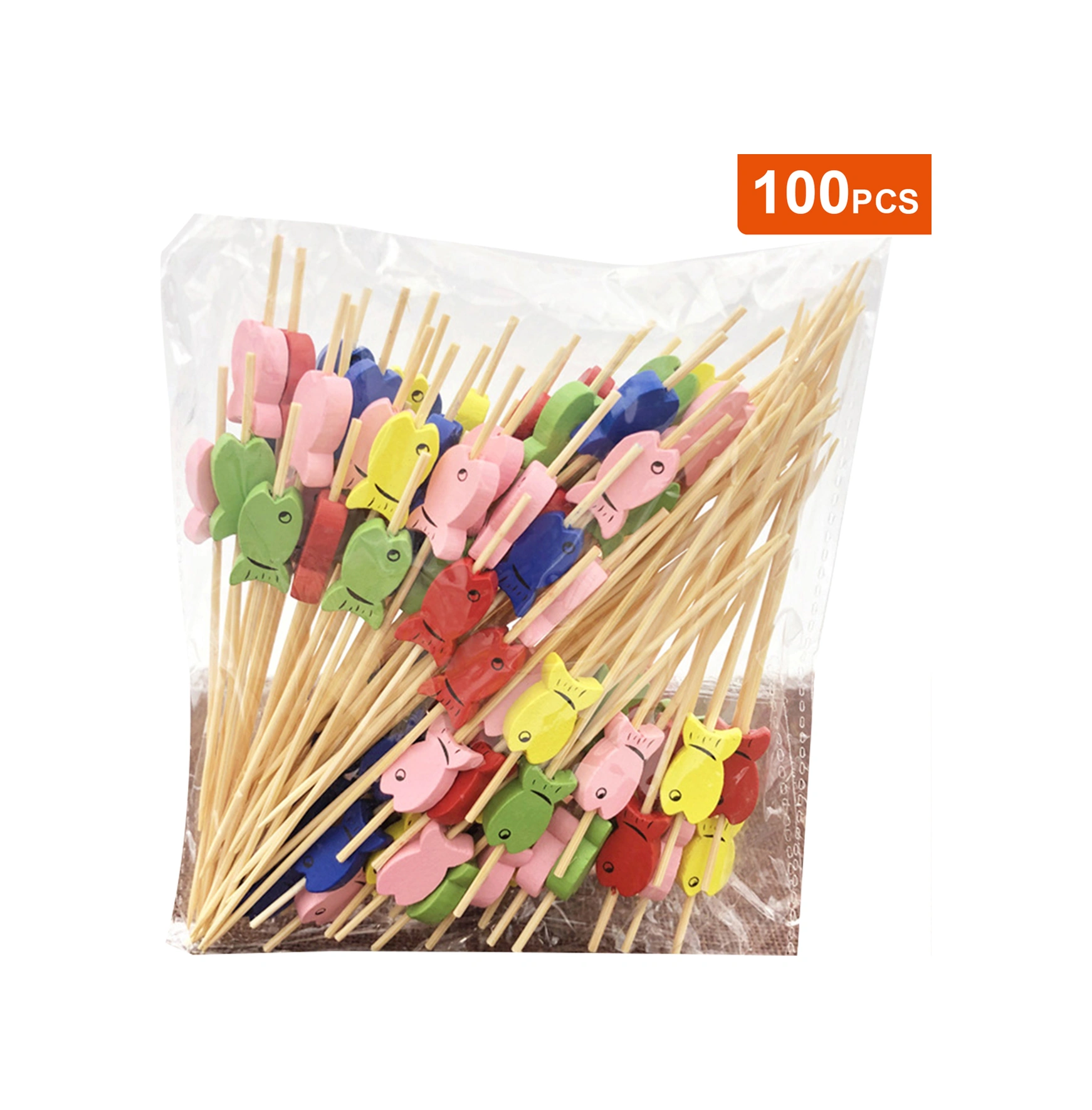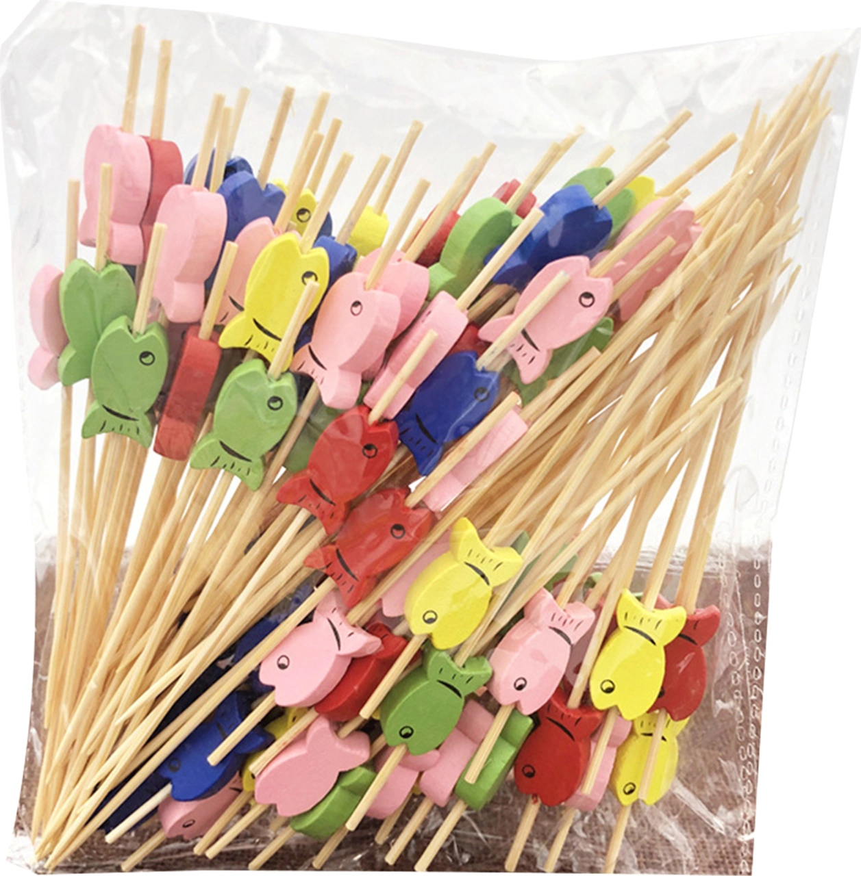 Youmex Bambu Meyve Çataları, 100 Adet, Renkli Balık Desenli, Kokteyl-meyve-sandviç Uygun, Güvenli Ve Sağlıklı Artistik Çatal Seti Diğer