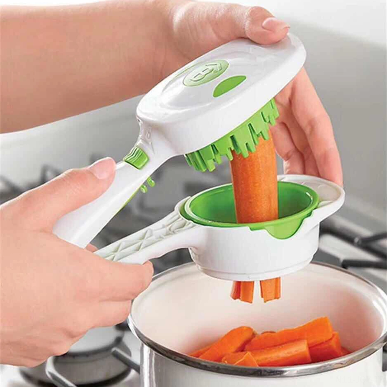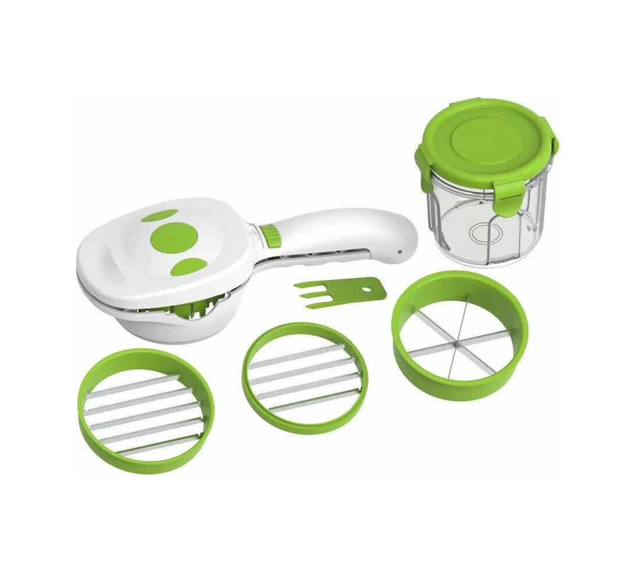 Youmex El Tipi 3 Farklı Dilimleme Bladıklı Sebze Kesici, 220 Ml Muhafaza Kasesi Ve Tazelik Kapaklı, Çabuk Ve Kolay Kullanım Beyaz - Yeşil