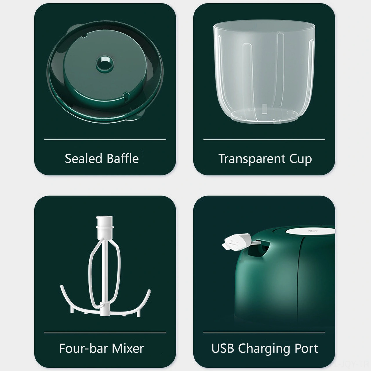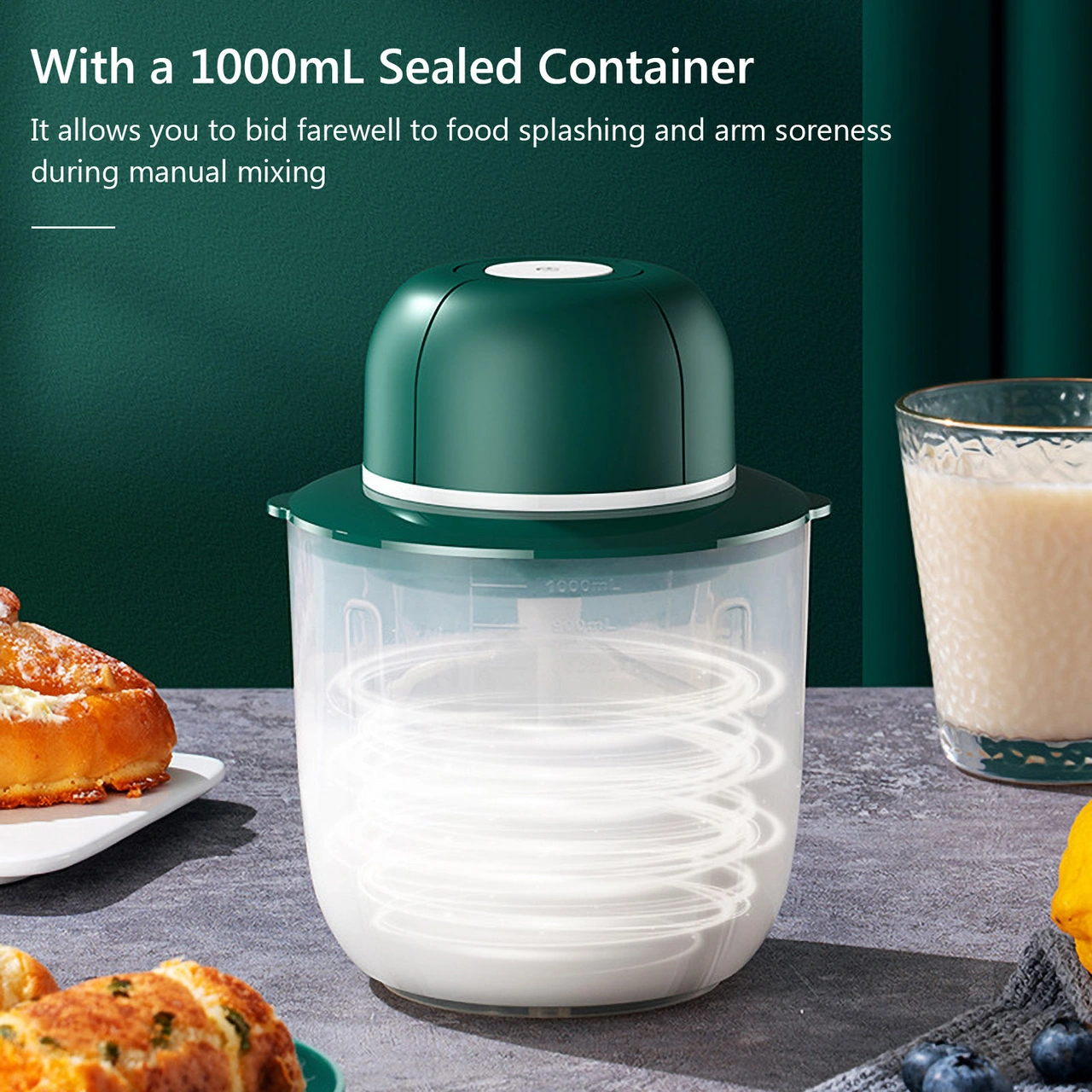 Youmex Ev Kullanıma Usb Şarjlı 1000ml Dört Eksenli Mikser - Kablosuz Kullanim, Elle Tutmaya Gerek Yok, Krema Ve Yumurta Çırpıcı Yeşil