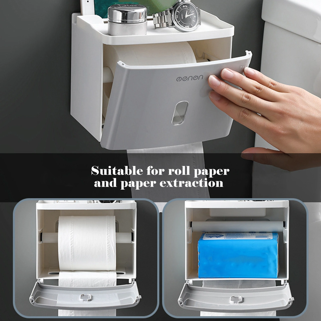 Youmex Gri Duvar Tipi Multifonksiyon Tuvalet Kağıdı Dispenseri - Abs Malzeme, Sezerye Penceresi, Serinimli Kilit, Kolay Kurulum Paspaslı Sticker Dahil