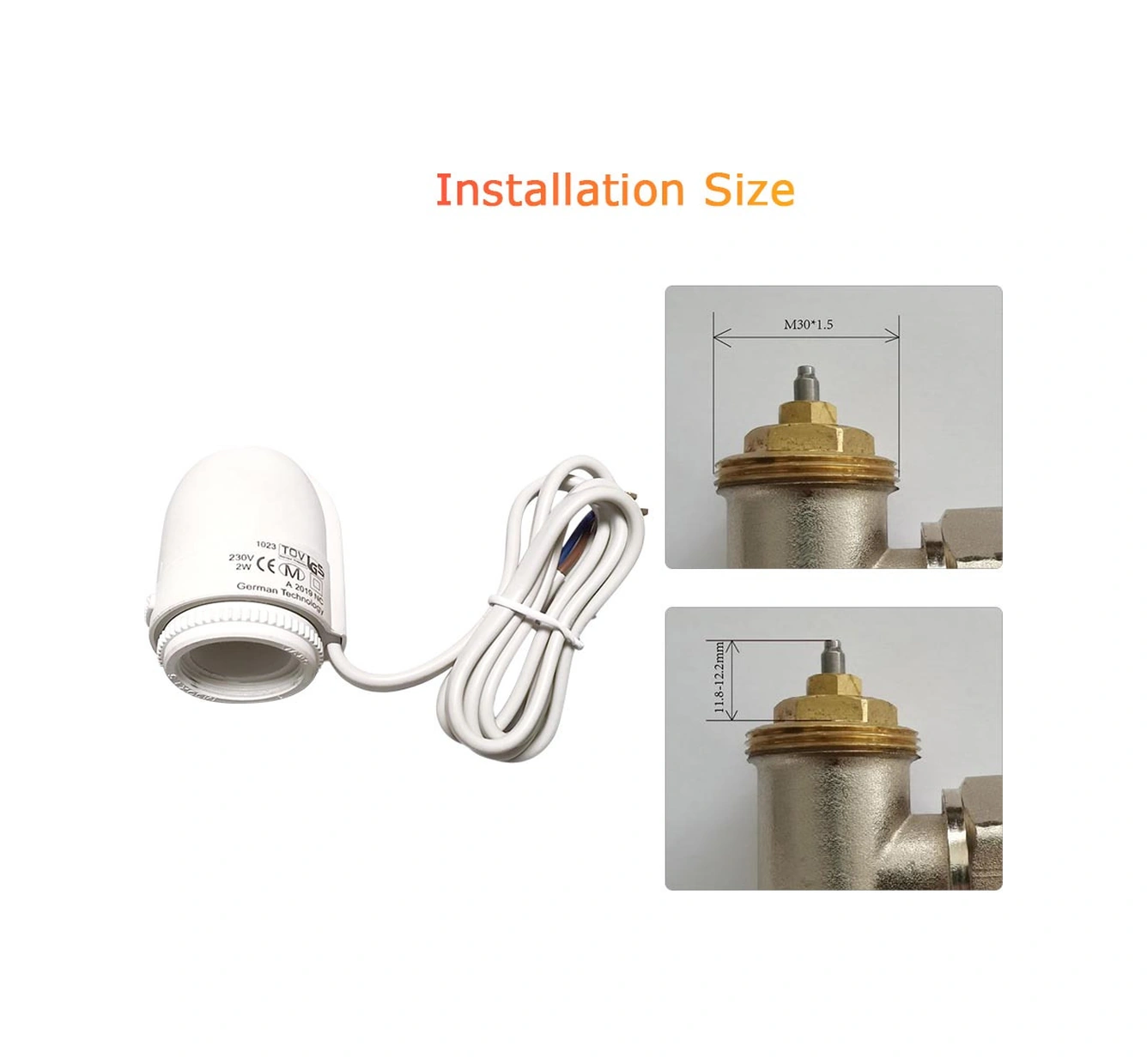 Youmex Isıtma Kontrolü Sıcaklık Aktüatörü, Kapatma Tipi, M30 X 1.5 Roset Bağlantı, Ac 230v, 100n Itme Gücü, Pc+gf Ateş Direnci Malzeme
