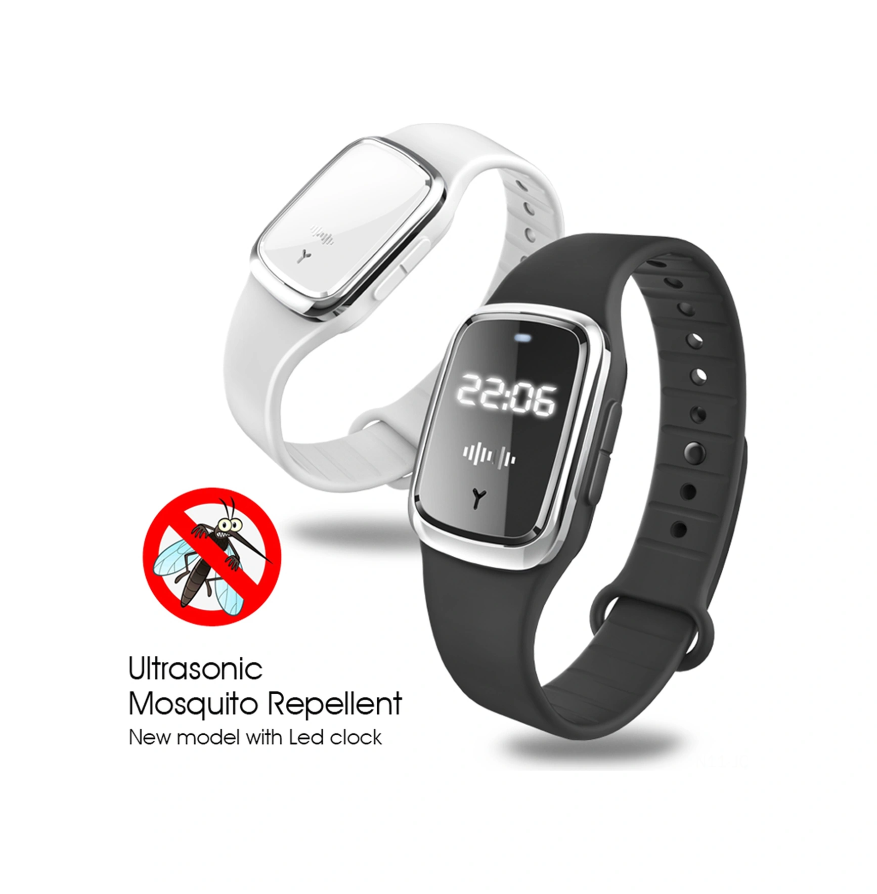 Youmex M2 Ultrasonik Sivrisinek Kovucu Saat, Çocuk-yetişkin-hamile Uyumlu, Dış Mekan Kullanıma Uygun, Saat Fonksiyonlu Silikon Bileklik - Beyaz