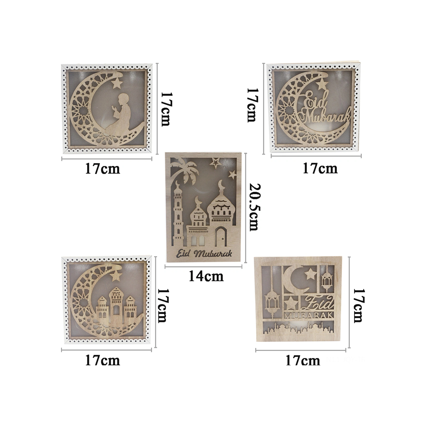 Youmex Muslim Bayramı Dekorasyonu Ahşap Ay Yıldız Mimari Desenli Led Işıklı Eid Mubarak - Jm01937 Sarı