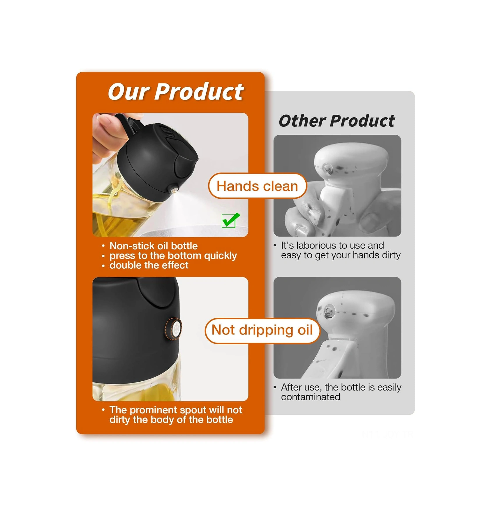 Youmex Mutfak İçin 500ml Cam Yağ Flashtası: Dökme Ve Sprey Fonksiyonu, Damlama Önleyici, Sağlıklı Ve Pratik Kullanım Siyah