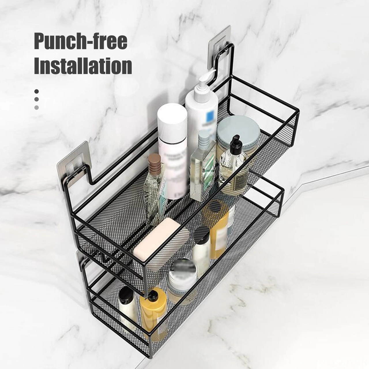 2' Li Banyo Düzenleyici - Yapışkanlı Banyo Ve Mutfak Rafı - Siyah Toparlayıcı Banyo Aksesuarı Şampuanlık Sabunluk Siyah