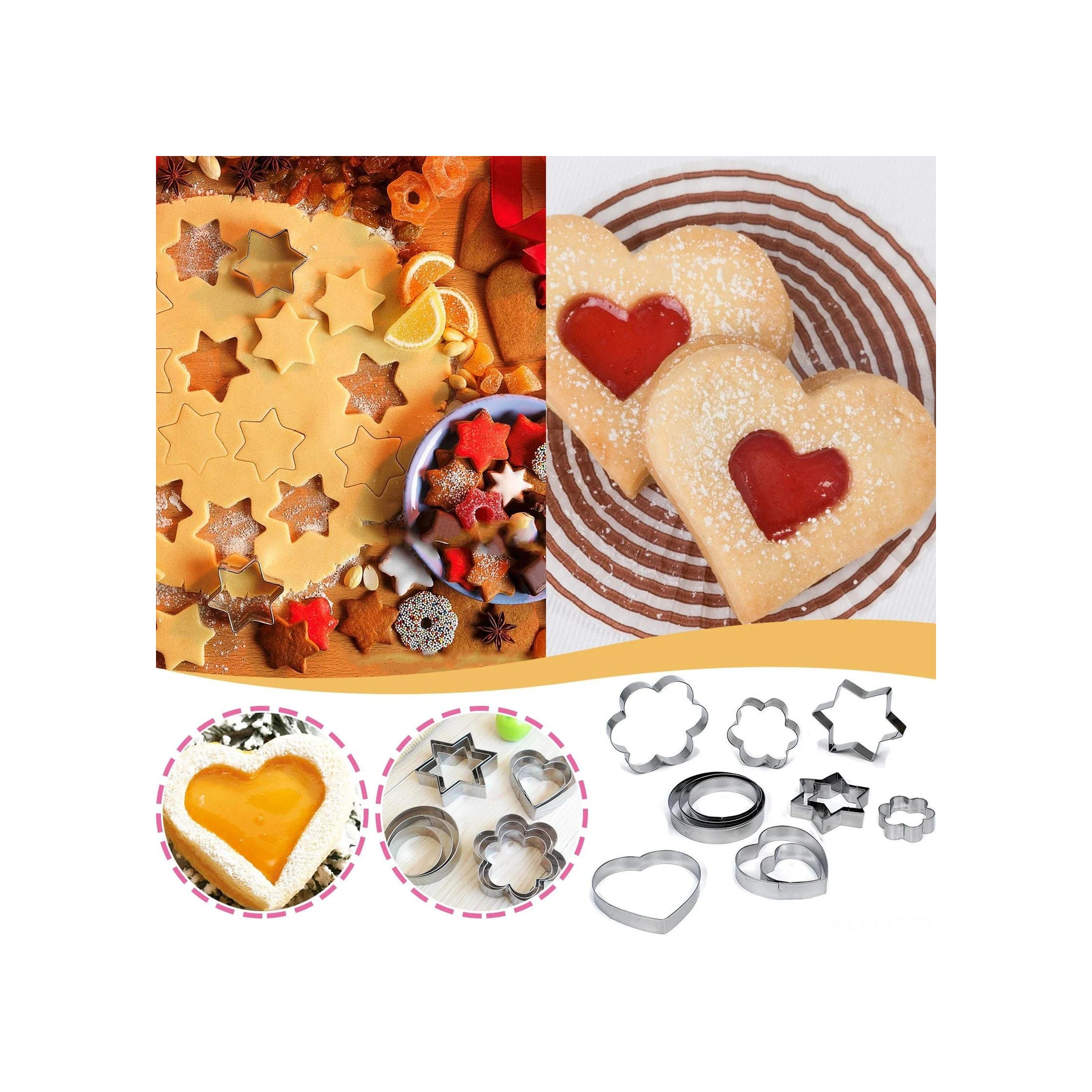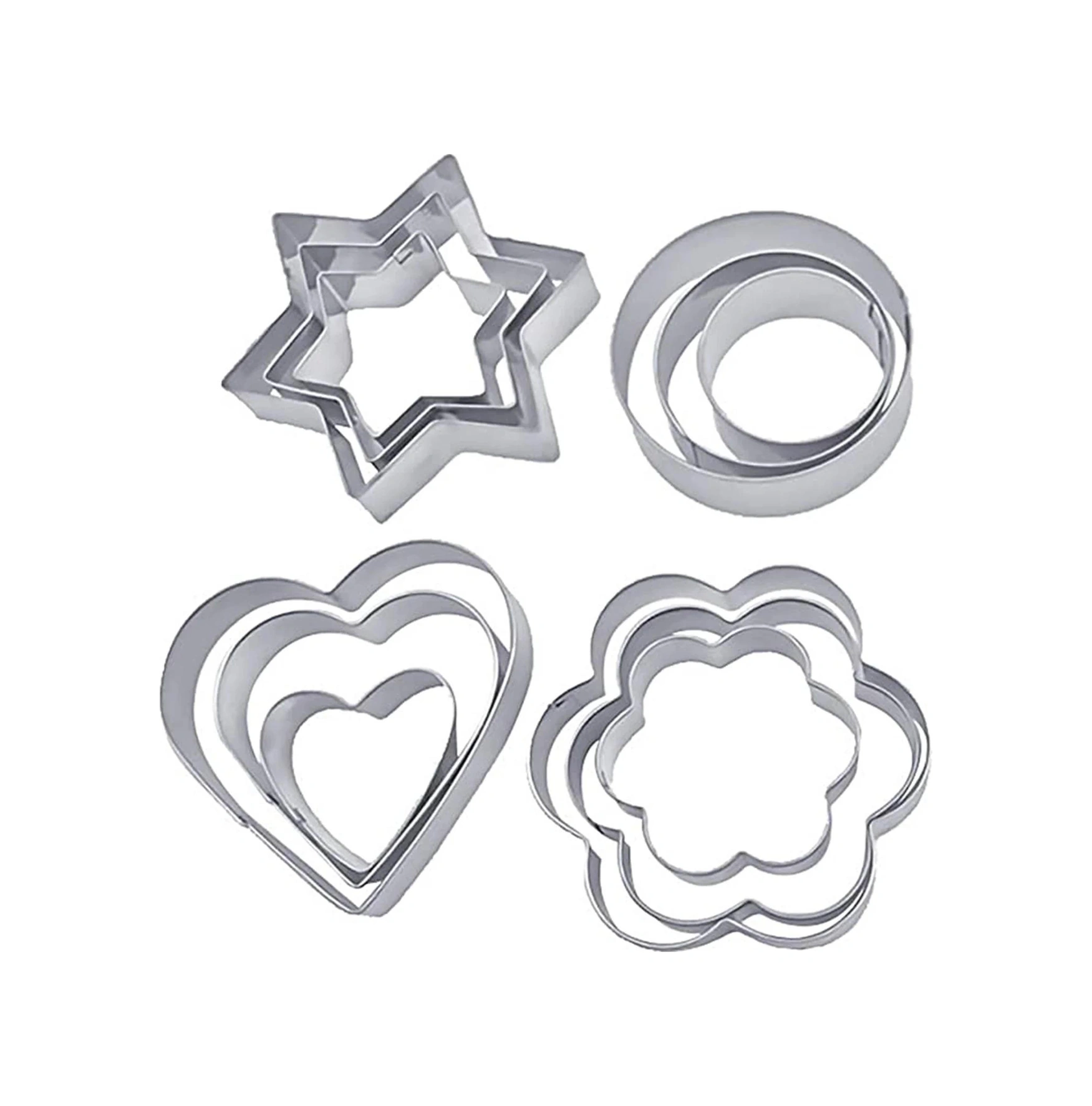 Youtek 12'li Paslanmaz Çelik Kek, Kurabiye, Tatlı Kalıbı Seti - Yeniden Kullanılabilir, Dayanıklı, Hamur Ve Sebze Kesme Baking Aracı Gümüş