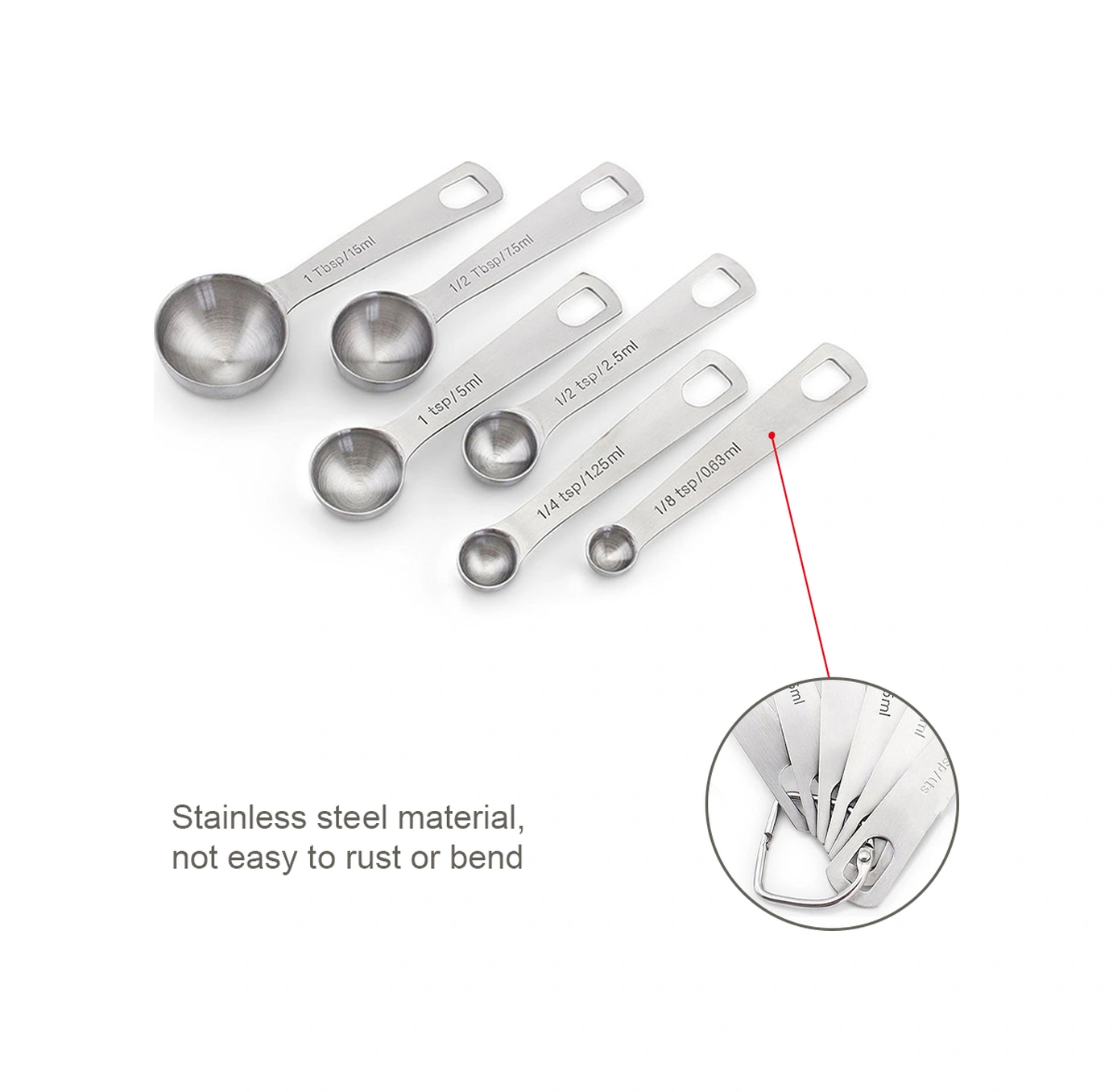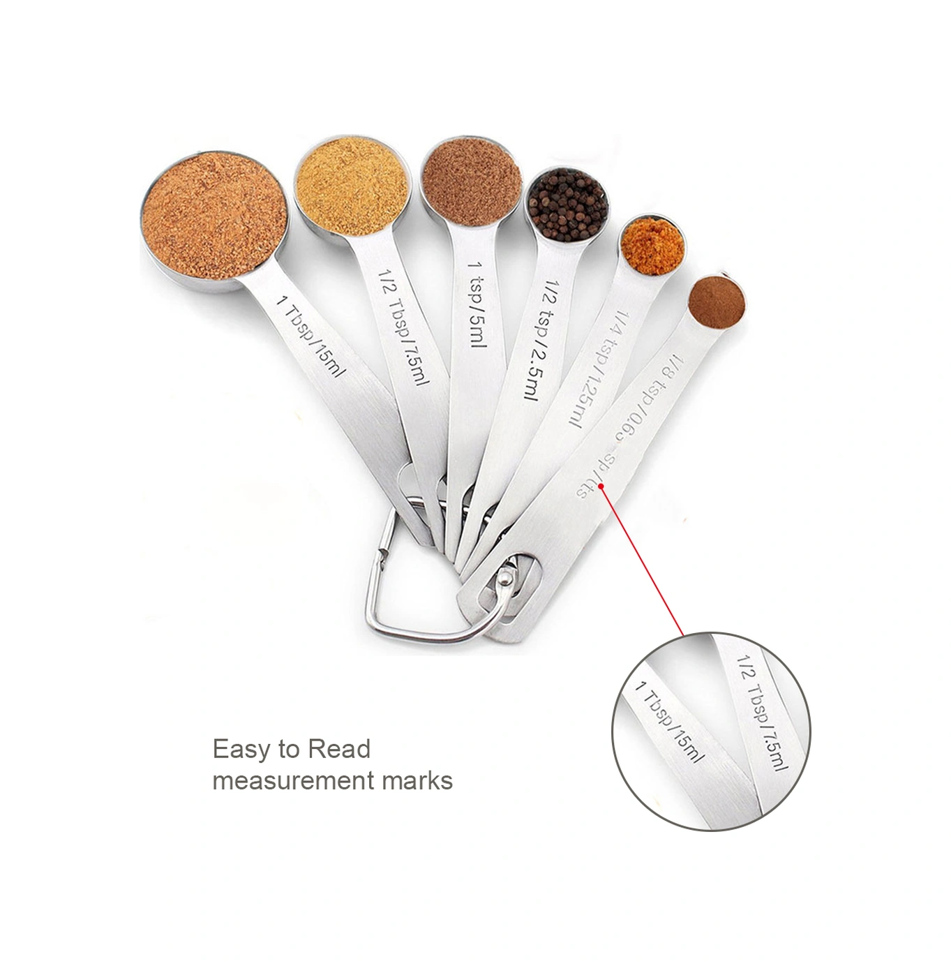 Youtek 6'lı Paslanmaz Çelik Ölçü Kaşığı Seti - Hassas Ölçüm, Gölgeli Markalar, D-ring İle Birleşik - Hamur İşleme, Baharat Ve Likit Malzemeler İçin Diğer