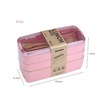 Youtek 900ml Pembe Buğday Samanı Üç Katlı Bölmeli Plastik Yemek Kutusu - Öğrencilere Ve Ofis Çalışanlarına Uygun, Taze Yemek Taşıma Diğer